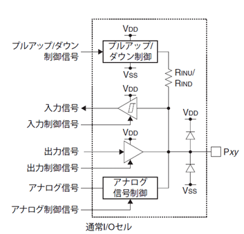 マイコンおいて、入出力ポートは欠かすことのできない、もっとも基本的な機能ブロックです。マイコンのソフトウェアからみて、入出力ポートは比較的容易に操作が可能な機能ブロックですが、一口に入出力ポートといっても、その構成や特性などはさまざまであり、十分に理解しないまま使用すると、思わぬトラブルを引き起こす可能性もあります。以下では、一般的にCMOS ICで実現されるマイコンの入力出力ポートについて説明をします。