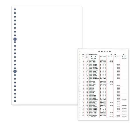 A4・30穴パンチ穴入りのレーザープリンター用白紙用紙です。元帳をはじめ、A4サイズの帳表の印刷にお使いいただけます。