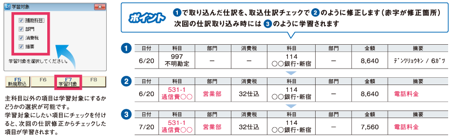 インターネットバンキング・クレジットカード・電子マネーの取引データをエプソンの財務会計に仕訳データとして自動で取り込みます。会計ソフトへの入力業務を大幅に軽減できます。
