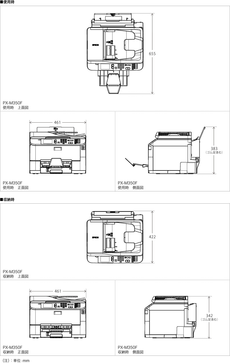 | 機械占有寸法 | 幅461×奥行655mm(使用時最大) | |