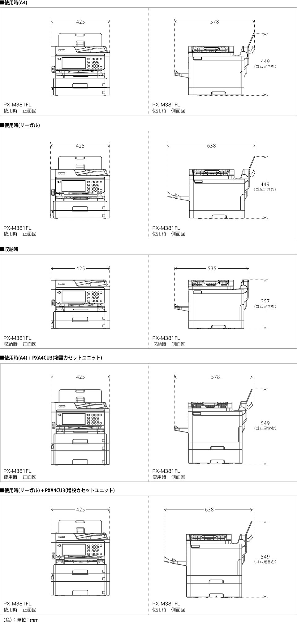 | 用紙サイズ | A4/A5/A6/B5/B6/ハガキ/長形3号、4号/洋形1号、2号、3号、4号/角形20号 | |