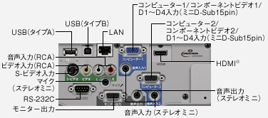 | 映像入出力端子 | IN | ミニD-Sub15pin(×2)、RCA、S端子、HDMI® |