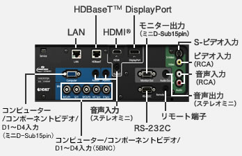 | 映像入出力端子 | IN | ミニD-Sub15pin、5BNC、S端子、RCA、DisplayPort、HDMI®、HDBaseT™ |