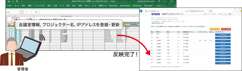 プロジェクターの導入・追加・削除などはMicrosoft® Excel®で簡単に設定できます。