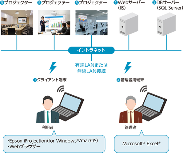 | SQL Server® | Webからプロジェクションのデータを格納するデータベースサーバー。 |