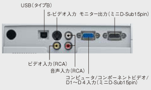 | 映像入出力端子 | IN | ミニD-Sub 15pin、RCA、S端子 |