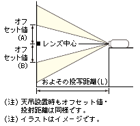 | スクリーンサイズ | 投写距離(L) | オフセット値 (注1) 値(A=B) |