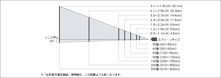 - プロジェクターからの投写距離とスクリーンサイズの高さの関係