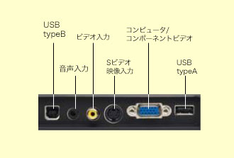 | 映像入力端子 | ミニD-Sub15pin、RCA、S 端子、PCMCIA、USB端子タイプA(注1) | |