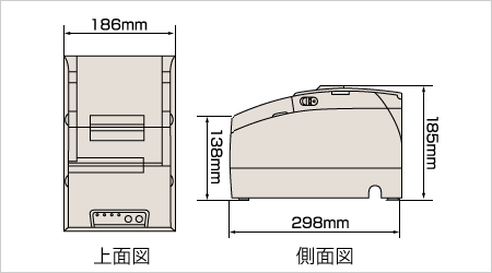 | 印字速度 | 最大200mm/秒 | 約5.7LPS (40桁、17.8CPI印字時) |