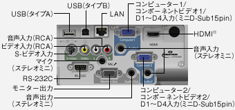 | 制御入出力端子 | RS-232C端子(プロジェクター制御用)、 USB端子タイプB(USBディスプレイ用、 プロジェクター制御用) |