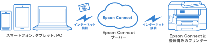 PC、携帯電話、スマートフォンなど、メールが送信できる機器からメールアドレスを持つプリンターへ