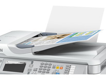 プリンターやスキャナーでスキャンしたデータを、Epson Connectに登録しているプリンターを宛先にして送付すると、送付先のプリンターから出力されるので、カラーファクスのように使用することが可能。また、Evernote®サービス(注1)などEメールを直接受け付けることができる他社サービスを宛先にすれば、それぞれのサービスにPCレスでデータを直接アップロードすることもできます。
