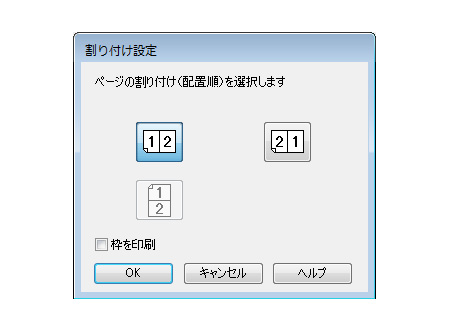 「割り付け設定」画面で2面/4面や順序等設定が可能です。