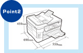 A3ページ複合機は本体が大きいので、当社のような狭い事務所では、設置場所に苦慮していました。PX-1700Fはコンパクトでデスクサイドに設置できるので、とても助かってます。