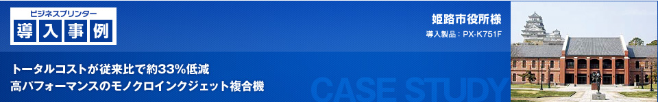 市役所庁舎内と図書館などの出先機関に計47台導入しました(カラーでの印刷が必要な部署では、カラーモデルPX-B750Fを計37台導入してます)。導入してから現在まで、約1年半が経過していますが、故障トラブルは従来のページプリンターと比較して非常に少なく、胸をなで下ろしております。正直、導入検討時は、従来導入していたページプリンターと比べて印刷スピードや印字品質が落ちないか気になっていましたが、事前評価の中でその懸念は完全に払拭されました。印刷スピードについては、体感的にページプリンターに比べて遜色ありません。印字品質についても、業務で必要とされる可読性に充分なクオリティーです。