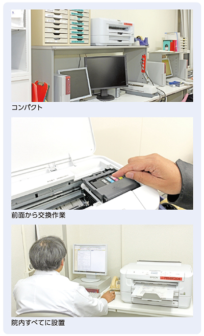 電子カルテになって、カルテに貼るものは減ったかもしれませんが、時代の流れで患者さんに渡す説明書等は逆に増えています。また、全ての部署がカラープリンターの設置を希望しています。そうなると、やはりA3対応なのにコンパクトで、本体価格も安く、印刷コストもそれほど高価でないこのプリンターは本当にピッタリきた感じです。