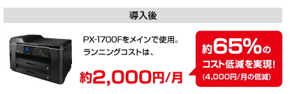 PX-1700F導入後、月々のランニングコストが従来に比べて半分以上抑えられました。この効果には大変満足しています。