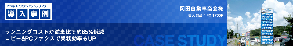 業務上、プリンターはコピーとファクス機能を使うことが多いですね。印刷対象は、車検証、車庫証明に必要な住宅地図、チラシ等のコピーです。従来はモノクロ複合機でしたので、コピーも当然モノクロ出力でしたが、PX-1700F導入後はカラーで出力できるようになった上、印刷スピードも速いので非常に満足しています。導入の際は、インクの滲みがちょっと心配でしたが、顔料インクが採用されており、コピー用紙への印刷でも滲みがなく、とてもキレイなので驚いています。