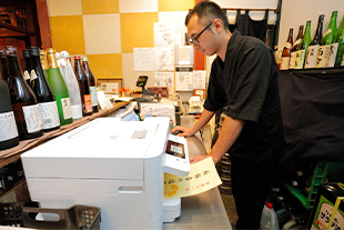 「滴屋」様が導入されているのは、省スペースを極めた、生産性重視のビジネスプリンター「PX-M780F」。主に各テーブルに置く献立表やメニュー表の印刷に活用されているそうです。店長の甲本揚三様に、その具体的なメリットなどを伺いました。「夜のコースは週替わりなので、お客様のテーブルにお出しする献立表の内容も、当然ながら毎週変わります。変更点はほんの一部ということもあれば、ほとんど変わってしまう場合も。でも店内で献立表を作成、印刷しているので、パソコン上で変更が必要な部分をサッと書き換えるだけで営業時間に間に合わせることができます。外部の制作会社などに印刷を発注しない一番の理由は、この手軽さを重視しているからなんです」