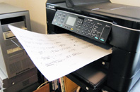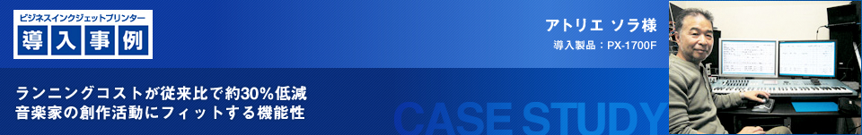 何といってもPX-1700F導入後はランニングコストが抑えられましたね。従来は2台のページプリンターを使用していたのですが、PX-1700Fを導入してからは、ほとんどこちらをメインで使用するようにしています。結果、消耗品コストが確実に少なくなっていることを実感しています。導入してから約10ヶ月が経過してますが、ざっくりと見積もってみても、導入前に比べ、月あたり2,000円は印刷コストが抑えられていますね。主要業務は作曲・編曲活動ですので、最も印刷頻度が多いのは楽譜の印刷です。ポップス系の楽譜はA4サイズが主流なので、A4用紙にそのまま印刷するか、A3用紙に2面割付で印刷していますが、PX-1700Fは2段カセットを標準装備しており、A4用紙とA3用紙を常時セットしておける点も重宝しています。また、クライアント様によっては、制作・音楽プロダクション的な立ち回りが必要とされることもあり、PX-1700FでPOPやチラシを制作することもありますね。あとは、スキャン機能もよく使いますね。