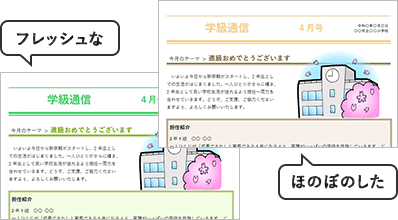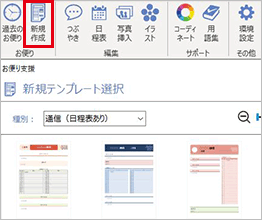 お便り作成時にテンプレートを選択して、お好みのレイアウトを選ぶだけで簡単にお便りのベースが完成!!