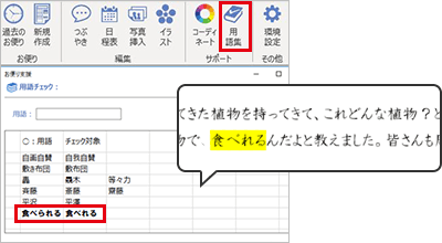 事前に「用語集」に用語を登録しておくことで、生徒の名前や間違えやすい言葉などMicrosoft® Wordにはない校正のチェックができます。