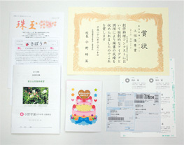 また、ファーストプリントが早いので短い休み時間でもすぐに印刷できる点や、多種多様な紙に対応しているので、子どもたちに渡すカラーイラスト入りの誕生日カードや教材カードなど、先生方の工夫で様々な用途に活用が拡がっています。