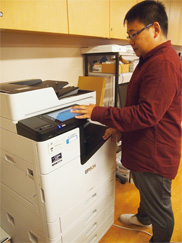 当園では、約10名の職員がエプソンのスマートチャージ対応モデルを使用しています。保護者への連絡やお手紙などの配布物が最も多く、次いで画用紙などで作る教材を印刷し、運動会や遊戯会のプログラムも作っています。以前はページプリンターとデジタル印刷機の2台を使っていましたが、厚紙や画用紙などの印刷時に、印字のかすれや紙詰まりなどのトラブルが絶えませんでした。そのため印刷に時間がかかり、とくにプログラムは500部近く印刷するため、やむを得ず職員が帰りがけに片面に印刷し、翌朝に残りを印刷することもありました。ただ、朝に印刷が失敗していることも十分に起こり得ることや、カラープリントのコストも高く、消耗品交換で手が汚れるといった課題もあったのです。