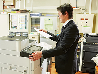 以前はA判対応、B判対応、厚紙用紙、保管印刷用などで使い分けが必要なため、職員室と事務室で多数のレーザープリンターやインクジェットプリンター、コピー機などを使用していました。また、小学校などでは通知表や不定形紙などの特殊紙を使うことが多く、その度に用紙の入れ替えや紙づまりなど多くの手間やトラブルに悩まされていました。さらに印刷業務の繁忙期である学期末やテスト時期には大量プリントに時間がかかり、用紙交換やインク交換の頻度も高く、常に機器を見張っていて対応する必要がありました。