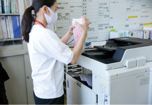 職員室の高速インクジェットプリンターで、自分のデスクから“ながら印刷”