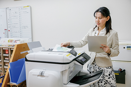 高速カラー複合機導入後は、印刷の速さが圧倒的です。写真の美しさや文字の鮮明さも十分で、驚くほど綺麗です。