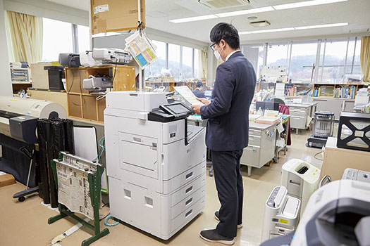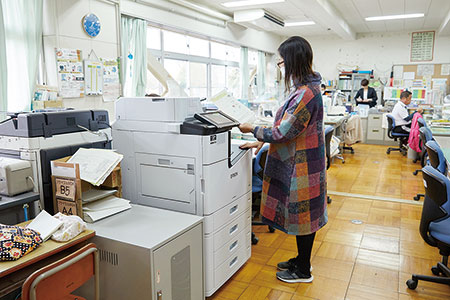 職員室内にLX-10050MFとPX-M7080FXを設置、さまざまな印刷やスキャンに活用