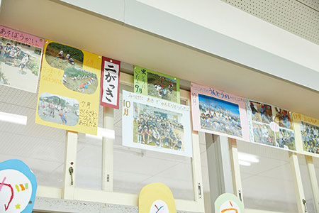 年間行事の掲示物ではタブレットで撮影した写真の印刷出力を貼付けて制作
