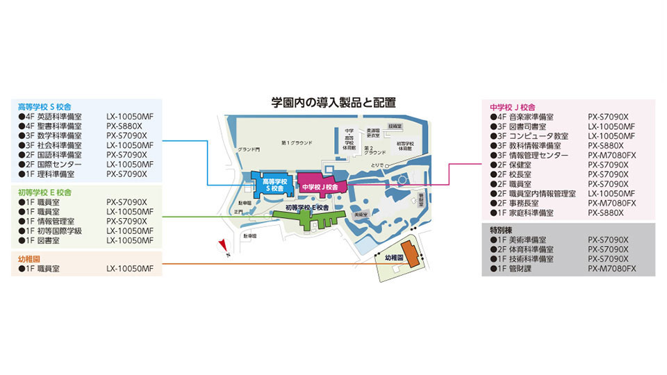 - 学園内の印刷機器を28台に集約、コストや管理の手間が大幅に削減