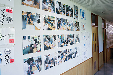 校舎の入口付近には校内行事の案内などをカラーの掲示物で目立つようにアピール