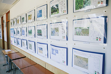 かいこの観察日記などをiPadで作成、印刷したレポートは廊下に貼って掲示