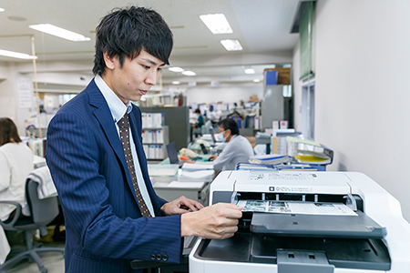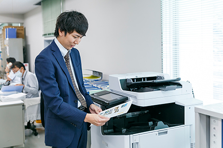 モノクロ・カラー100枚/分(注1)の高速印刷で、特に両面印刷の速度が速く、冊子の資料作成も短時間で行えます。何より、PCから直接ネットワークで印刷ができるのは大変助かります。大量印刷でも、わざわざ印刷室に行かずに、デスクから印刷をかけながら同時に他の仕事も進められるので、業務効率化にとても役立っています。