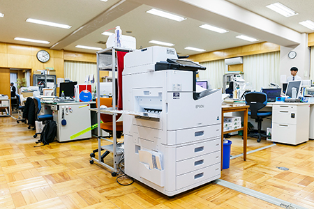 ネットワークでデスクから直接印刷できるようになり、印刷やスキャンの速さによる作業効率向上や丁合作業が要らない冊子印刷も大きなメリットに感じています。また、インクが自動的に発送されてくるので消耗品の管理や発注も不要になるなど、慣れるともう以前の状況には戻れないと感じています。