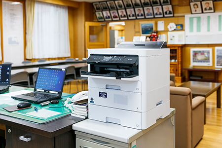 私自身は、校長室のプリンターで、市教委や県からのお知らせを印刷して先生方に配布したり、職員室のプリンターで会議資料の冊子などを作成しており、今後はスキャンによる書類のPDF保管も進めていきたいと考えています。