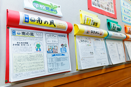 学校だよりや学年だより、表示板など全てカラー印刷(南小学校)