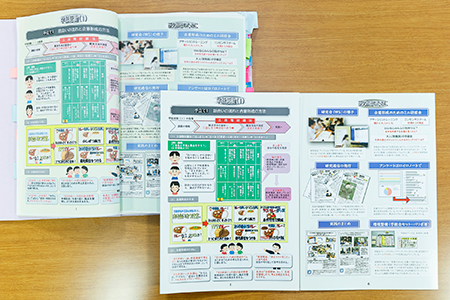冊子印刷の機会は、他にも社会科見学や修学旅行のしおり、学校要覧や経営計画、研究収録などたくさんあるので、とても助かっています。また、リーフレットの制作などでは、最終品は印刷会社の印刷物ですが、印刷会社に発注する前に色味を見たり、校正しながら作れるようになりました。色見などは、テスト版のほうが最終品より綺麗なくらいです。