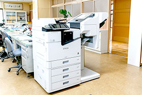 現在、資料をデータで共有することも多くなりましたが、学校現場では紙で配布するものも多くあります。エプソンの高速カラーインクジェット複合機になってからは、印刷のスピードも速く高画質で、コピー用紙でも綺麗に写真印刷ができます。Chromebook™ で作成した夏休みの日記や図工の作品なども、印刷して教室に掲示しています。冊子印刷は両面印刷とフィニッシャー機能により大変楽になり、学校経営要綱は印刷会社に頼む必要がなくなりました。