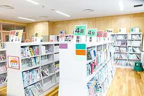 気軽にカラー印刷ができ、図書室のカテゴリー分類も工夫してひと目で分かるようになった(日吉小学校)
