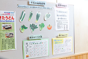 給食の献立や使用している地場の野菜や果物などもイラストや写真を使ったカラー印刷で、分かり易くアピールすることができる