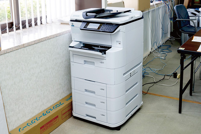 2023年4月に入札を行い、5月からエプソンのカラーインクジェット複合機16台を導入して運用を開始しました。