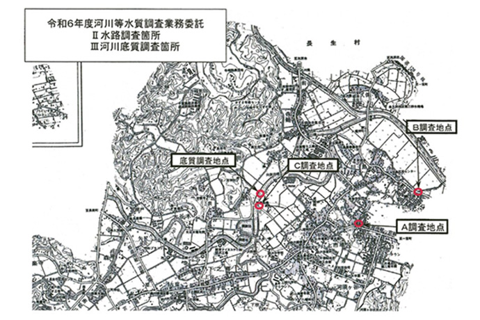 睦沢町は千葉県南東部、県庁のある千葉市から約30kmに位置し、関東平野から房総丘陵に向かうなだらかな斜面にあり、中央部を埴生川・瑞沢川・長楽寺川が流れ、一宮川に合流して太平洋に注いでいる。
