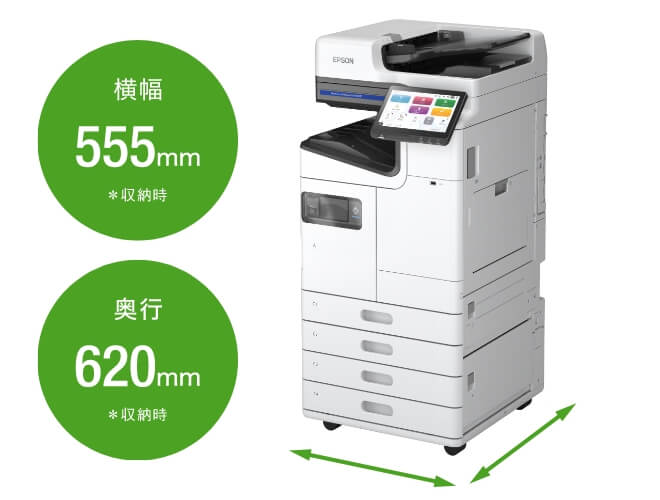 機体内部の構造を大幅に変更したことにより、小型化を実現。横幅555mm、奥行620mmとコンパクトサイズのため、置き場所を選びません。また、丸みのあるフォルムを採用。使用環境や使用者に圧迫感を与えません。