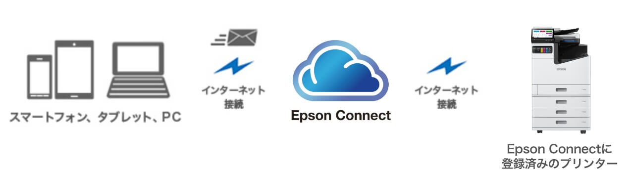 PCはもちろん、PCレスでも、スマートフォンやタブレット端末などさまざまなデバイスから自在にプリント。事前にプリンターを設定しておけば、外出先のスマートフォンなどからプリントも。さらに、クラウドにも対応しているので、クラウド内のファイルを、どこででもプリントすることができます。