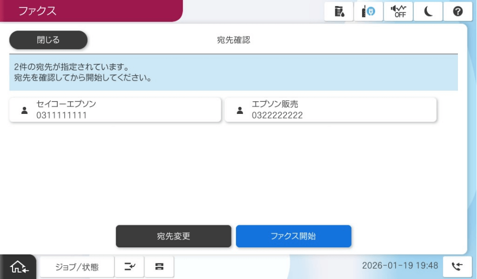 ワンタッチダイヤル、短縮ダイヤルなどから宛先を設定する際に宛先情報を表示して、確認後に送信することで誤送信を防止します。